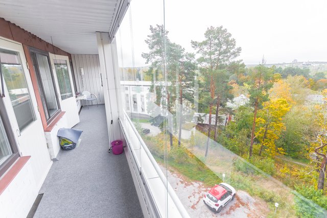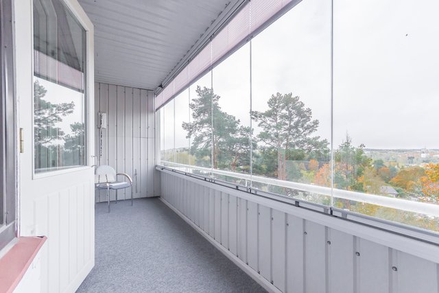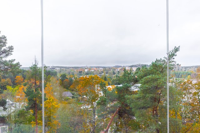 Parvekkeelta avautuvat upeat näkymät lähes koko keskustan ylle, ja päätyasunnon sijainti takaa oman rauhan. Seinänaapureita on vain yksi, eikä yläpuolella ole ketään.