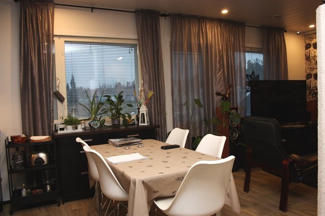Vuonna 2007 rakennettu ja vuonna 2020 remontoitu rivitalon päätyhuoneisto. Huoneistossa on lattialämmitys sähköllä (2020) ja lisäksi olohuoneen ja avokeittiön välissä tilanjakajana varaava takka. Remontissa on mm. huoneiston pinnat uusittu, asennettu lattialämmitys kaikkiin huoneisiin, lisätty lämmöneristys ulkoseiniin, uusittu keittiön kaapistot ja koneet. Asunnossa on väljät asuintilat ja sen pinta-ala on 84 m². Huoneistoon kuuluu lisäksi autokatos ja lämmin ulkovarasto kätevästi asunnon sisäänkäynnin yhteydessä. Taloyhtiössä on koneellinen ilmanvaihto lämmön talteenotolla ja valokuitu.