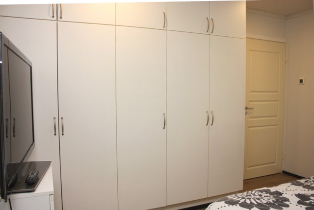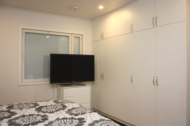 - Huoneistoon kuuluu runsaasti säilytystiloja: iso ja lämmin ulkovarasto on kätevästi sisäänkäynnin vieressä, vaatehuone, sekä kiintokomeroita.