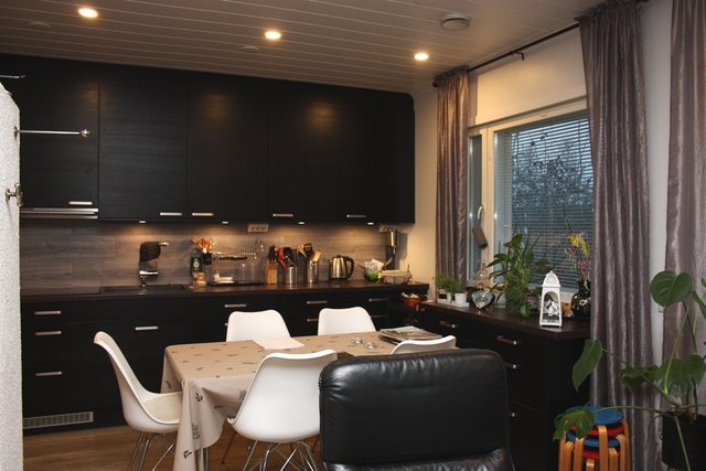 - Keittiö on remontoitu 2020, jolloin on purettu olohuoneen ja keittiön välinen seinä, koneet ja kaapistot on uusittu, sekä uusittu pinnat ja asennettu lattialämmitys.