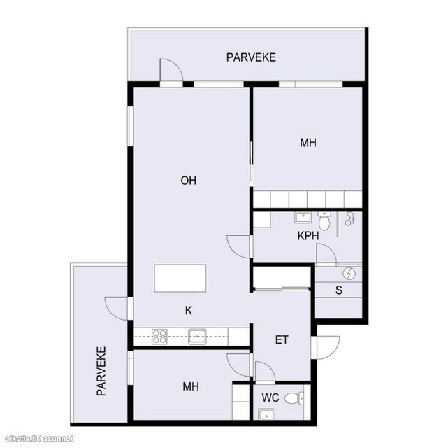 3h + avok + kph + sauna + erillis wc +2 x lasitettu parveke