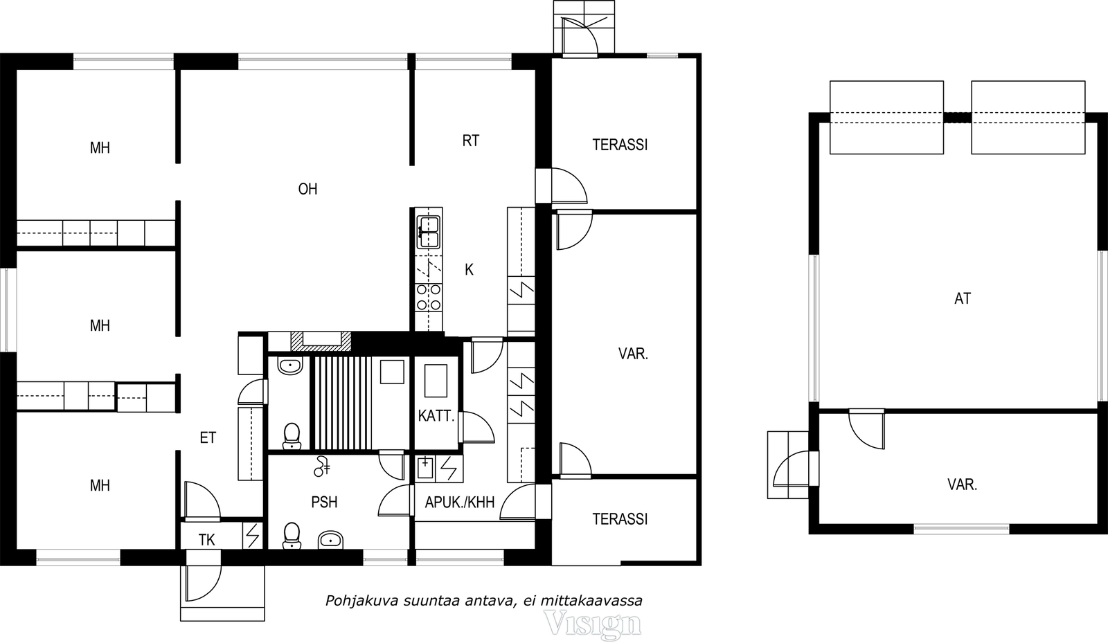 - Kodinhoitohuoneessa paljon pöytätilaa ja käynti lämmityshuoneseen.