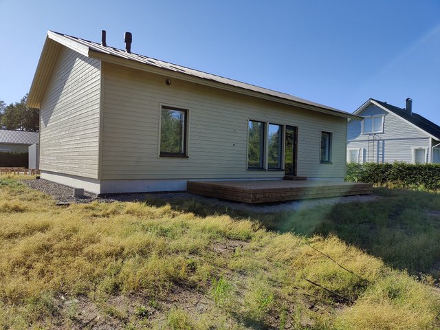 - Takaterassi 3m x 6m. Etuterassi 2,1m x 6m, joka on katettu. Etuterassin voit halutessasi lasittaa helposti.