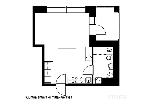 Hyvien yhteyksien lähellä sijaitseva tyylikäs asunto, jossa on kivoja yksityiskohtia ja runsaasti valoisuutta tuovat isot ikkunat. Asunnossa on reilu huonekorkeus keittiötilasta eteenpäin ja viihtyisä parveke, joka jatkaa tilaa ympäri vuoden. Keittiötilaan mahtuu myös mukavasti kunnon ruokapöytä ja se on rajattu matalalla seinällä muusta huoneesta, tukkimatta valon kulkua ja jonka saa pois halutessaan. Kylpyhuone on tämän ikäisessä talossa luonnollisesti tilava.