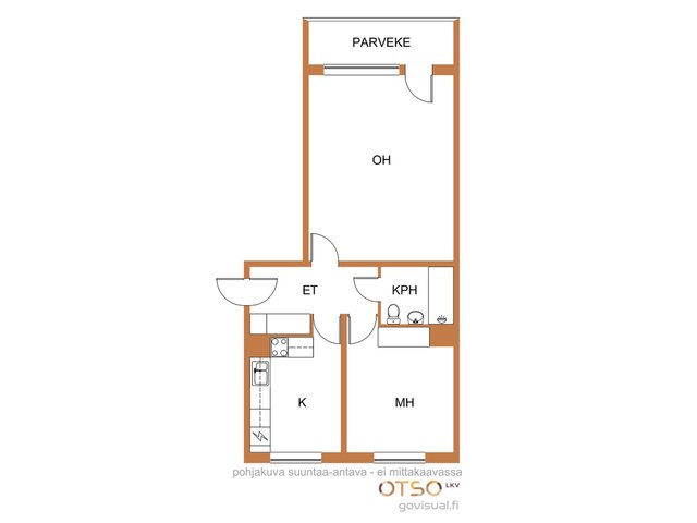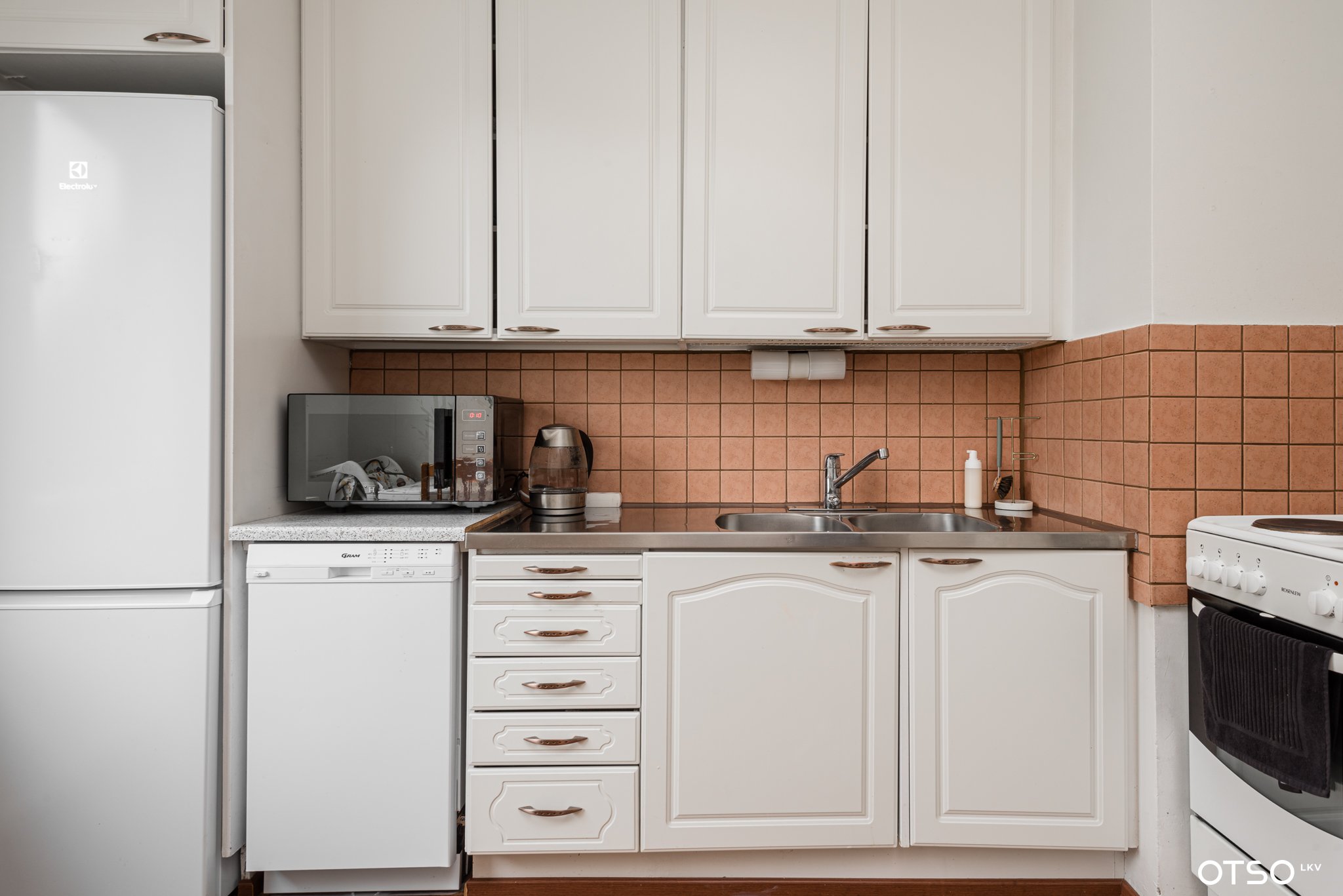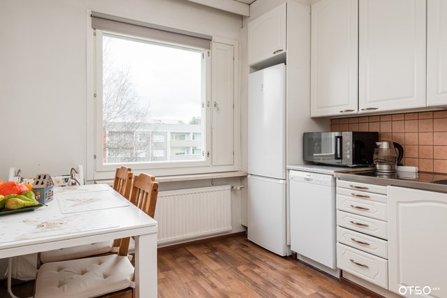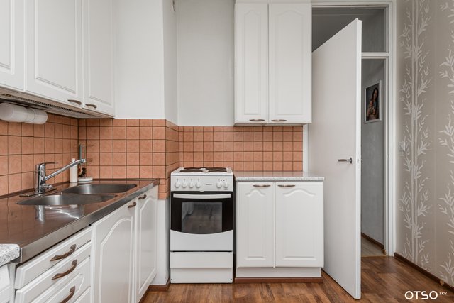 Hyvänkokoinen keittiö, iso olohuone, ja mukavan kokoinen makuuhuone tekevät yhdessä hyvän, toimivan kokonaisuuden. Pitkäaikainen vuokralainen valmiina.