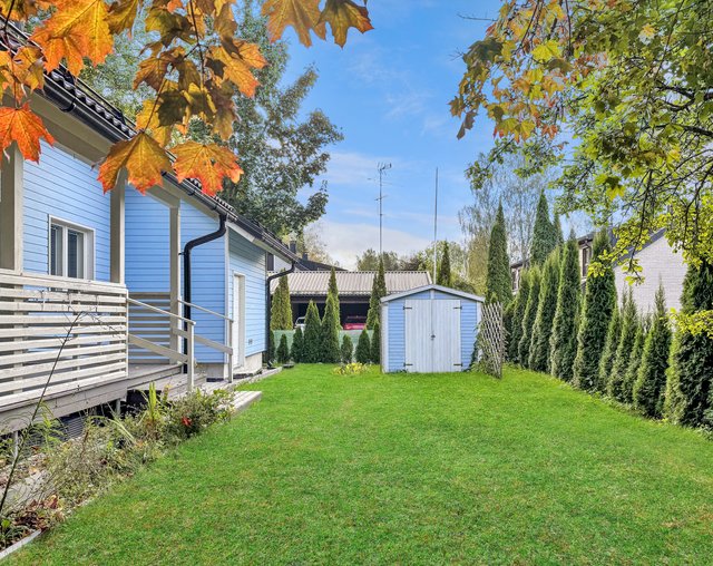 Talon pihapiiri on kuin oma pieni keidas keskellä kaupunkia. Istutukset, kuten omenapuu, pensaat ja ruohikko tekevät pihasta viihtyisän ja antavat mahdollisuuden omaan puutarhanhoitoon. Pihaan sopii hyvin yksi auto, ja toiselle autolle löytyy tila autotallista. Autotallissa on myös ullakko.