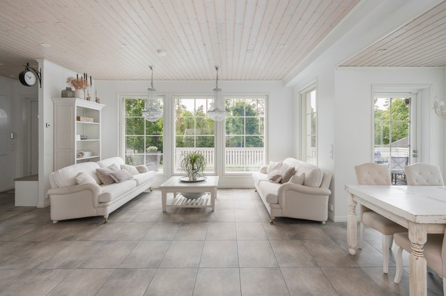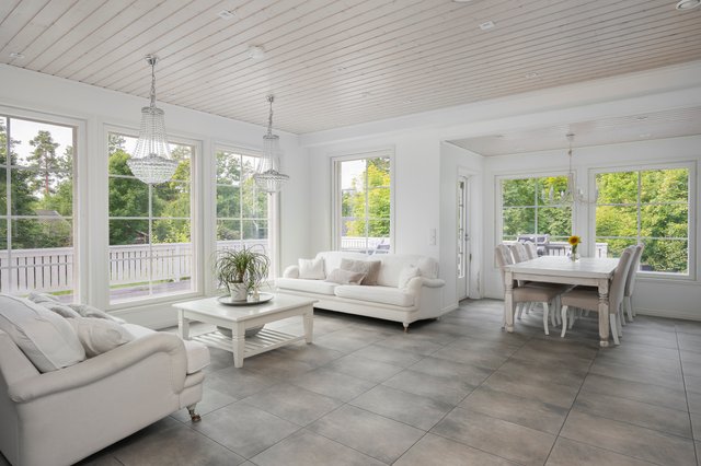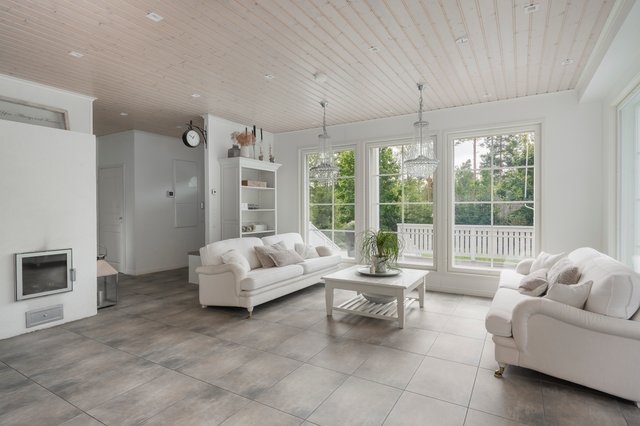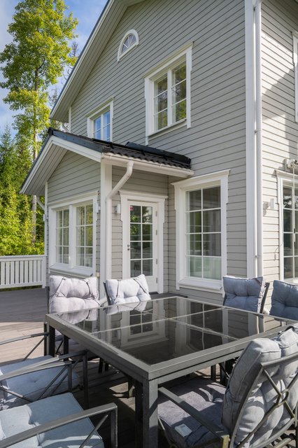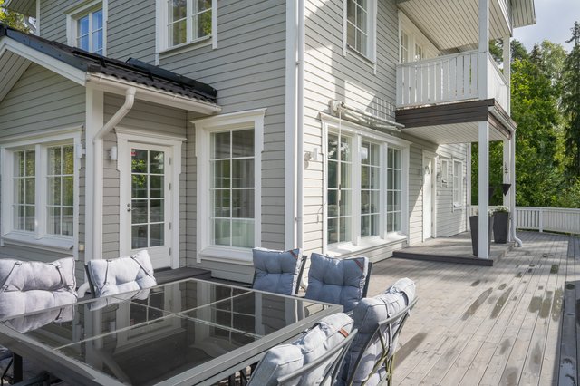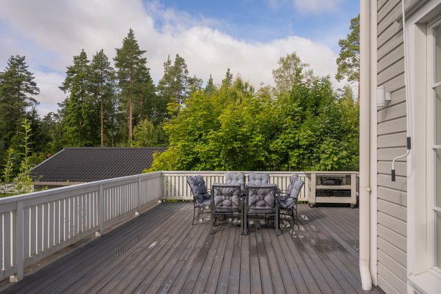 - Myyjän vahvistaman tiedon mukaan yhteensä jopa 200m2 eteläterassi kiertäen talon etelä-, itä- ja länsisivut.