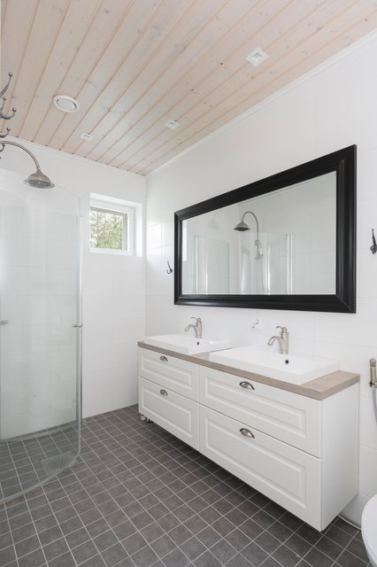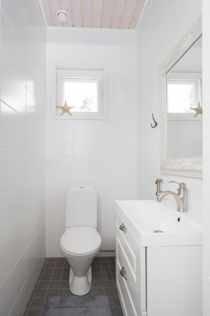 - Alakerrassa: Kodinhoitohuone, kuraeteinen, sauna, kylpyhuone, jossa kaksi suihkua ja erillinen wc bidee-suihkulla. Yläkerrassa: Kylpyhuone, jossa yksi suihku, wc-istuin, bidee, kaksi allasta.