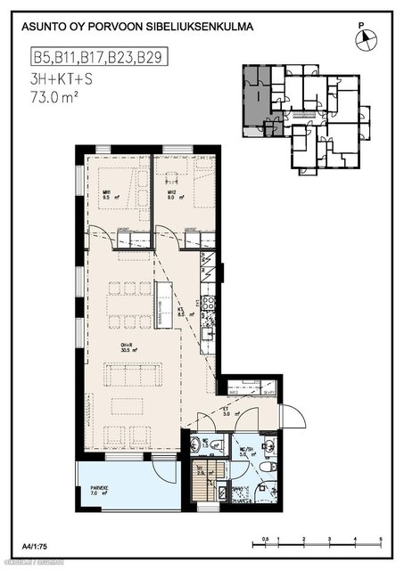 - Ostajalla mahdollisuus ostaa autokatospaikka hintaan 15.000 euroa.