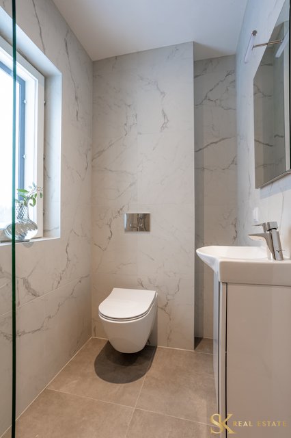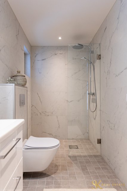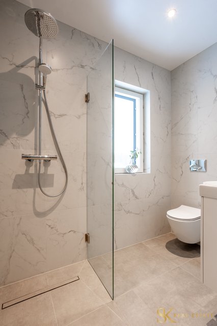 - 1. kerroksen kylpyhuoneessa on pesukoneliitäntä ja paikka pesukoneelle sekä kuivaajalle. 2. kerroksn kylpyhuoneen yhteydessä on sauna. VARUSTUS: Sadesuihkut, suihku, peilit, allaskaapit, seinä-WC, suihkuseinä, kiinteät valaisimet, lattialämmitys, 1. krs kph: paikka pyykinpesukoneelle, pesukoneliitäntä. SEINÄT: Laatta/maali. LATTIAT: Laatta.