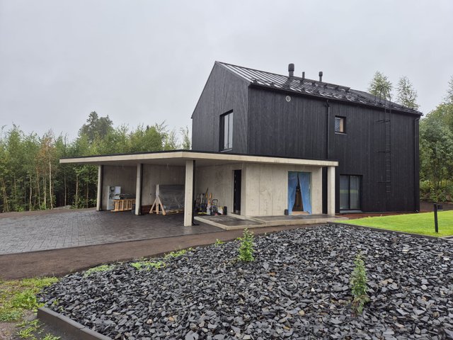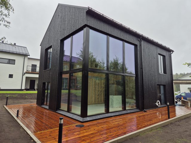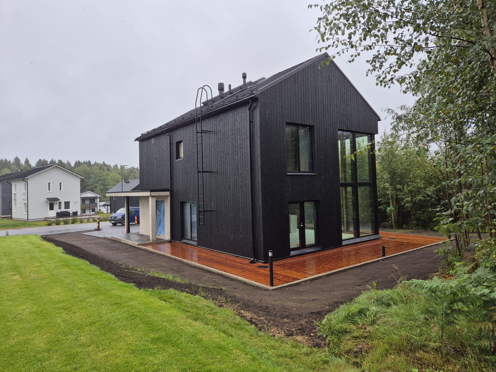 Tämä kaunis kaksikerroksinen omakotitalo on parhaillaan valmistumassa eikä se ole vain rakennus vaan tuleva koti, jossa elämä saa kehittyä rauhassa ja tyylillä. Moderni arkkitehtuuri yhdistyy puurunkoiseen lämpöön ja harjakaton konesaumattu peltikate kertoo kestävyydestä ja huolettomuudesta jo ensisilmäyksellä. Kaukolämpö ja vesikiertoinen lattialämmitys tekevät kodista sekä energiatehokkaan että aidosti miellyttävän – täällä kuljet sukat jalassa ympäri vuoden, hymyssä suin.