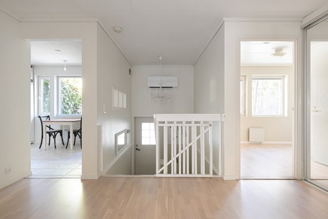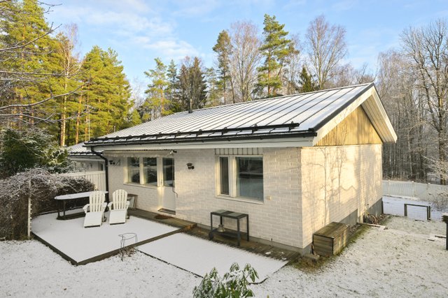 Tämä viehättävä omakotitalo Espoon Kaitaan rauhallisella alueella tarjoaa kodikkaan asumisympäristön. Vuonna 1991 valmistunut talo sijaitsee yhtiön omalla 2201 m² tontilla, ja se on osa neljän talon asunto-osakeyhtiötä. Talon 82 m² asuinpinta-ala on yhdessä kerroksessa ja lisäksi löytyy 36 m² muita tiloja alakerroksesta, lisäksi ulkovarasto.