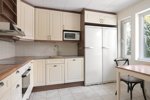 - Jääkaappi, erillinen pakastin, liesi, mikroaaltouuni, liesituuletin, erillisuuni, ja astianpesukone