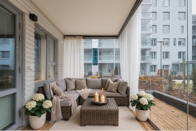 Tämä upea muuttovalmis kolmio on valmistettu laadukkaista materiaaleista. Asunnon erityinen valtti on suuri lasitettu terassi, joka toimii lisä-huoneena lähes ympäri vuoden. Avarassa olohuone-keittiössä on paljon luonnonvaloa, modernit kodinkoneet ja vaaleat pinnat. Kaksi makuuhuonetta tarjoavat hyvät säilytystilat ja rauhalliset puitteet arkeen.