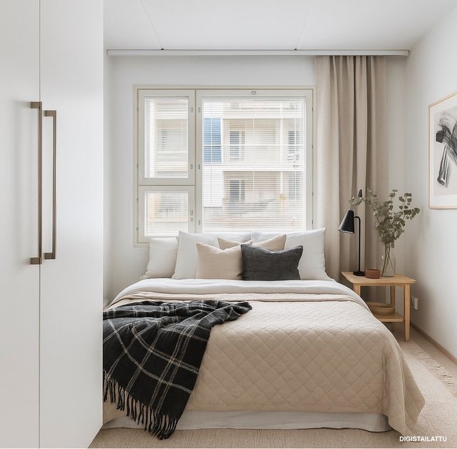 - Makuuhuoneissa runsaasti kaappitilaa. Parkettilattia ja seinät maalattu.