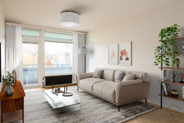 - Tilava olohuone on helppo sisustaa. Käynti myös lähes etelän suuntaan olevalle lasitetulle parvekkeelle