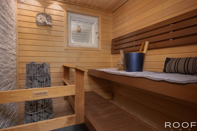- Varustus: Kiuas, Lauteet Seinät: Paneeli Lattia: Laatta