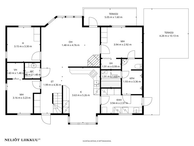 - Pinta-ala ei ole tarkistusmitattu ja todellinen pinta-ala voi olla suurempi tai pienempi, kuin ilmoitettu