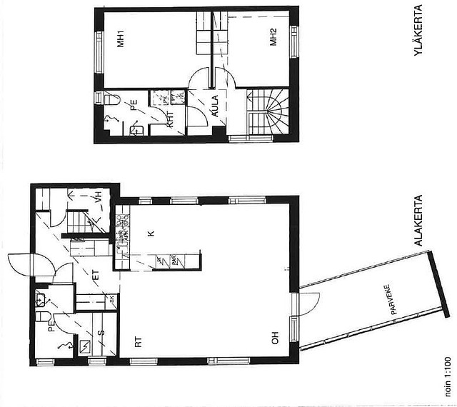 2-tasoinen perheasunto Tuusulan keskustassa. Alakerrassa keittiö ja olohuone, makuuhuoneet yläkerrassa.