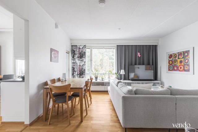 Hyvin hoidettu taloyhtiö sijaitsee viihtyisällä ja vehreällä alueella. Päivittäispalvelut ovat kävelyetäisyydellä, ja Helsinkiin pääset helposti niin bussilla kuin omalla autollakin.