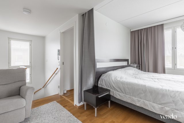 Valoisasta ja tilavasta olohuoneesta on käynti lasitetulle parvekkeelle. Suuret ikkunat tuovat runsaasti luonnonvaloa ja tekevät tiloista avarat ja viihtyisät. Pohjaratkaisu on selkeä ja helposti muunneltavissa eri elämäntilanteisiin. Huoneisto on kerrostaloasunnoksi harvinainen – siinä on kaksi kerrosta, jotka tuovat asumiseen lisää väljyyttä.