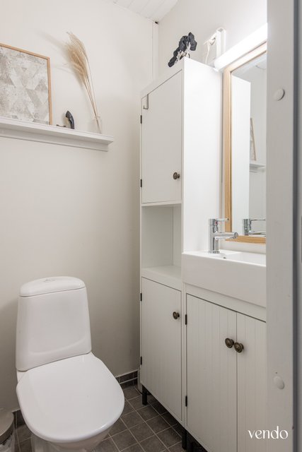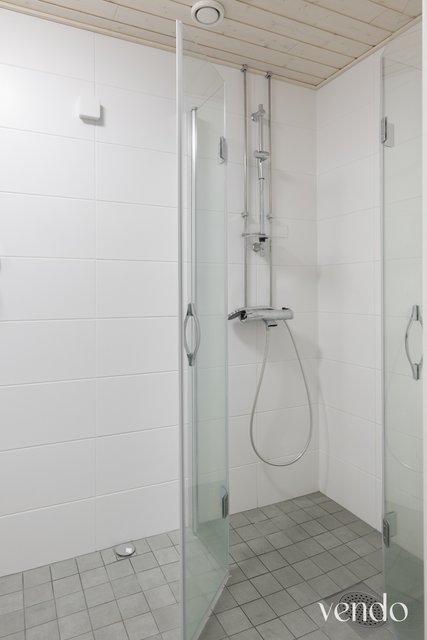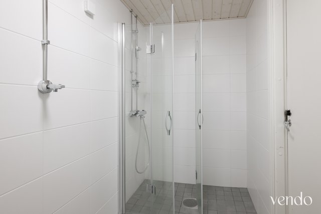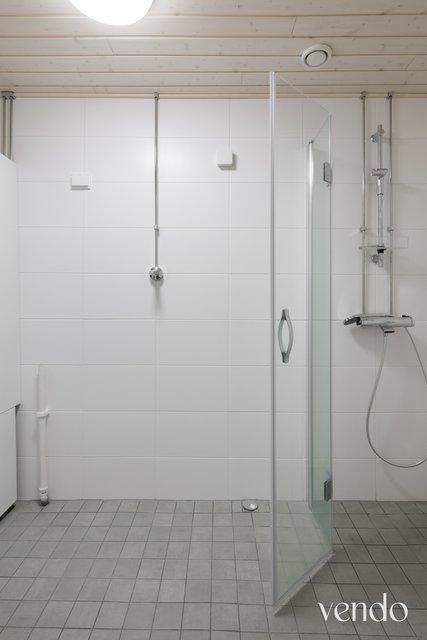 - Suihku, suihkuseinä, pesukoneliitäntä, ja lattialämmitys