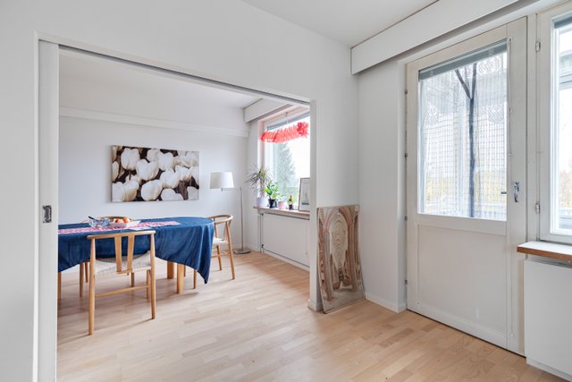 Erillinen wc. Tilava aulamainen eteinen, jossa hyvät säilytystilat.