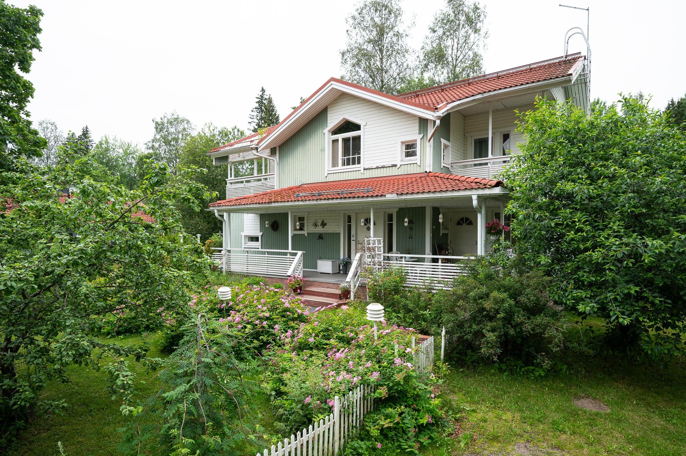 2004 valmistunut talo palvelee monenlaisen perheen tarpeita. Tuhannen neliön tontilla on tilaa lapsille, koirille ja puutarhurille. Kahden kerroksen tilat on jaettu perheen yhteisiin tiloihin alhaalla ja yläkerrassa on neljä makuuhuonetta. Etelä-länsipuolella on keittiö-ruokailuerkkeri-olohuone. Talon keskellä on saunaosasto ja kodinhoitohuone, josta on uloskäynti takaterassille. Itäpäädyn iso yksiö omalla sisäänkäynnillään palvelee joko yrityskäytössä, isovanhempien kotina tai tämän päivän kaivattuna etätyöpisteenä. Talossa on neljä vessaa, kaksi parveketta ja terassit molemmin puolin taloa. Kahden auton katoksen takaosassa on kaksi varastoa.