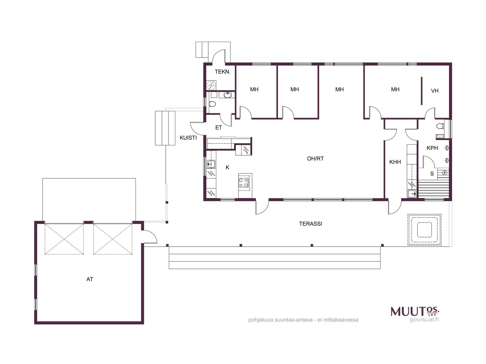 - Pinta-alat perustuvat myyjältä saatuihin tietoihin ja rakennuspiirustuksista laskettuihin arvioihin. Pinta-aloja ei ole tarkistusmitattu, mitattaessa pinta-alat saattavat olla ilmoitettua suurempia tai pienempiä. Kohteen kauppahinta ei ole osaksikaan pinta-alaperusteinen vaan perustuu kokonaisuuteen. Rakennuspiirustusten mukainen asuinrakennuksen kerrosala 125 m2 ja huoneistoala 111 m2. Autotallin kerrosala 41 m2. Tekninen tila/varasto kerrosala 4 m2. Kerrosala yhteensä 170 m2. Asuintilojen pinta-ala on laskettu rakennuspiirustuksista ja siihen on huomioitu kaikki asuinkäytössä olevat tilat, muihin tiloihin on laskettu tekninen tila ja autotallin arvioitu huoneistoala.