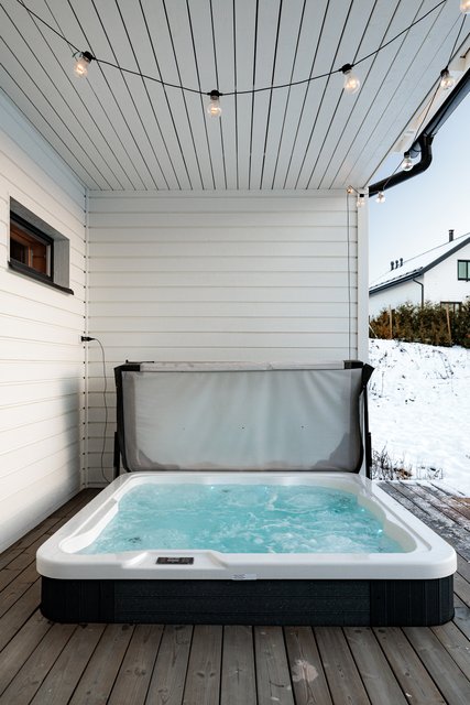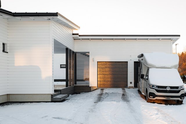 Kodissa huomio kiinnittyy sen tyylikkääseen viistokattoon, joka tuo avaruutta ja modernia ilmettä oleskelutiloihin. Talon huonejärjestys on muunneltavissa: nykyiset kolme makuuhuonetta tarjoavat tilaa perheelle, ja neljäs huone palvelee hyvin työhuoneena tai lisämakuuhuoneena juuri asennetun liukulasiväliseinän avulla. Kodinhoitohuoneessa on mukavasti säilytystilaa, ja sen kautta pääset suoraan isolle, noin 75m2 katetulle etelän puoleiselle terassille, jossa rentoutumista kruunaa oma Novitekin poreallas. Päämakuuhuoneessa on tyylikäs vaatehuone, josta on suora kulku kylpyhuone- ja saunatiloihin. Tämä käytännöllinen ratkaisu lisää asumismukavuutta ja tekee arjesta sujuvampaa.