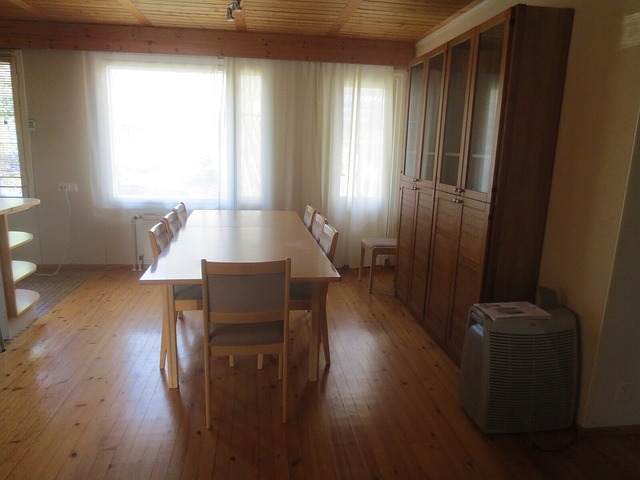 - erillinen ruokailutila jossa lauta lattia ja tapetoidut seinät