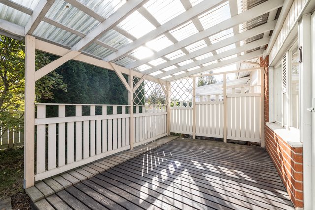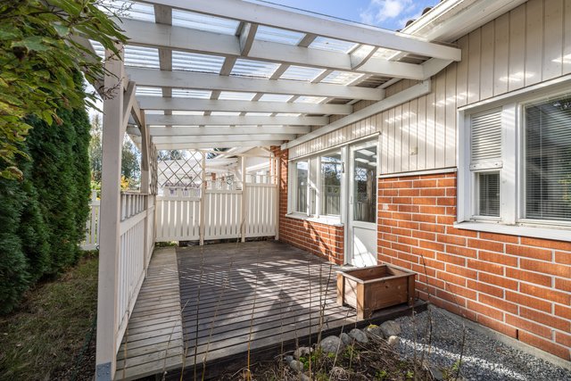 - Katettu terassi ja takapihaa, joka on nurmella.
