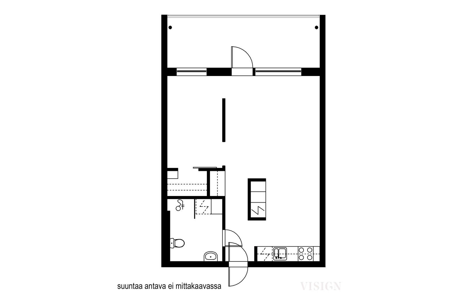 Asunnossa on hyvin suunniteltu ja toimiva pohjaratkaisu. Keittiön ja olohuoneen yhdistelmästä pääset huoneiston levyiselle lasitetulle parvekkeelle. Asunnossa on runsaasti kaappitilaa sekä tilava wc/kylpyhuone.