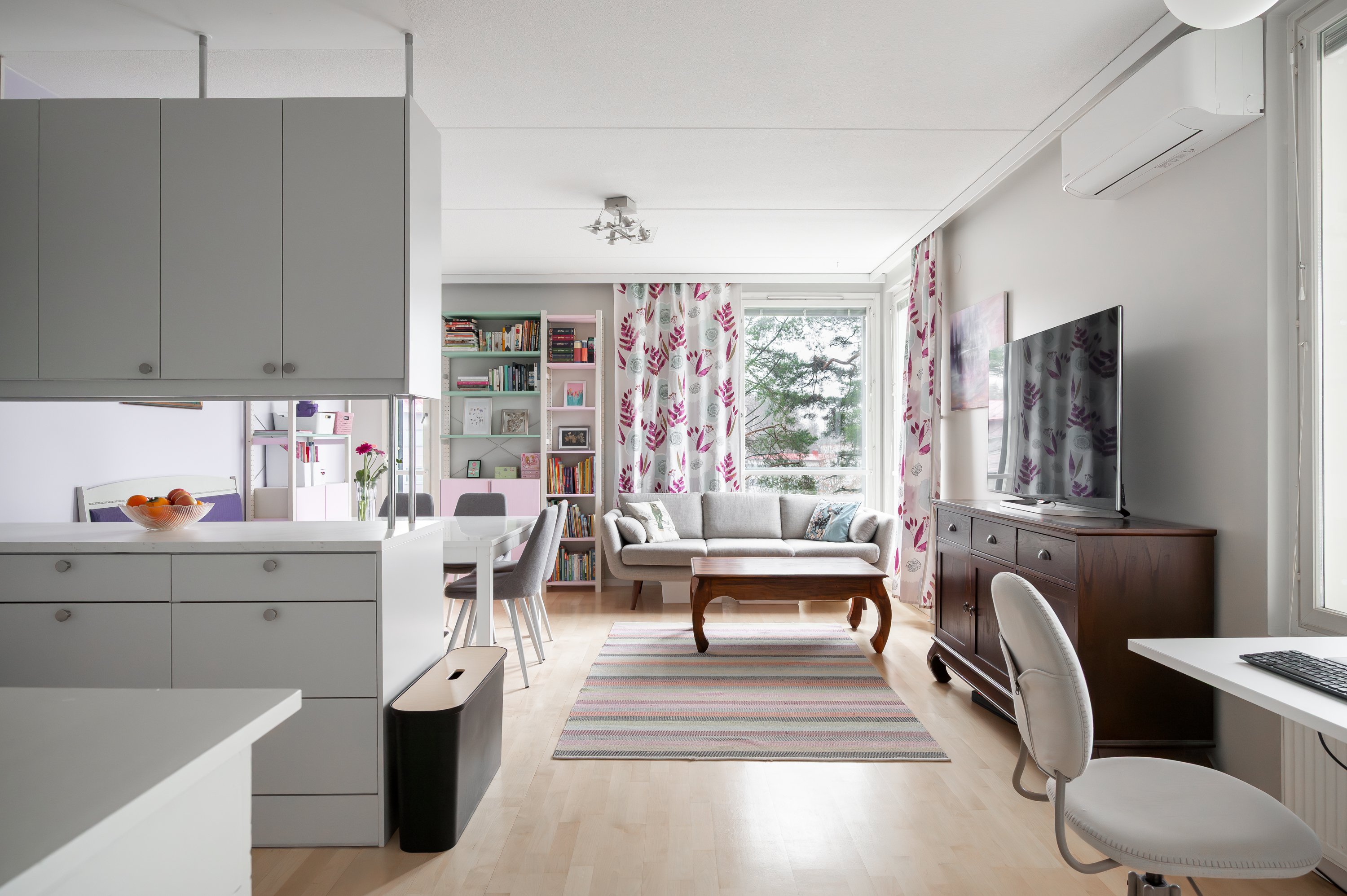 - SEINÄT: Maali. LATTIA: Parketti.