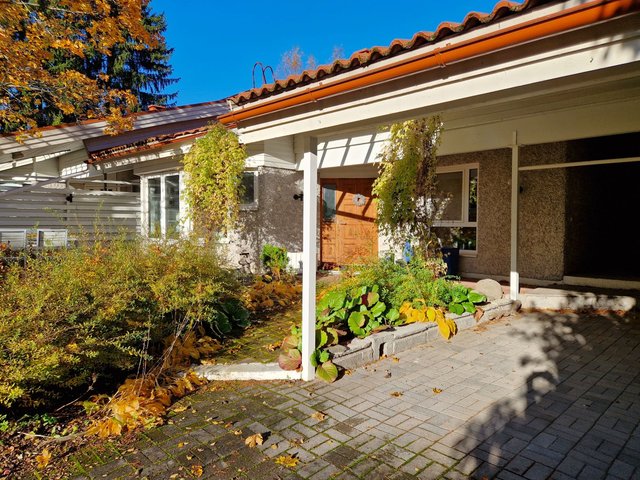 Asuintilat jakautuvat kahteen kerrokseen, yläkerrassa ihastuttaa korkeat vinokatot, valoisuus ja huvilatunnelma, 2005 remontoidusta keittiöstä pariovet pikkupatiolle ja kukkivalle etupihalle.