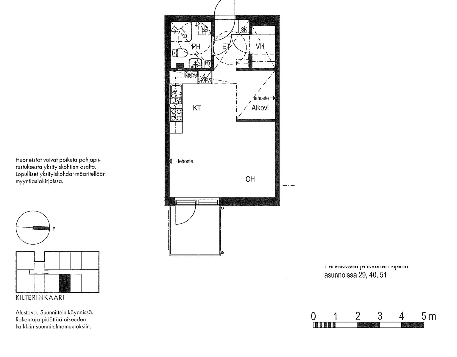 Asunnossa on harkittu pohjaratkaisu, joka sisältää erillisen alkoven, avoimen keittiön ja tilavan kylpyhuoneen. Kompakti lasitettu parveke tarjoaa upeat näkymät, mikä tuo luonnon lähelle ja luo kodikkaan tunnelman.