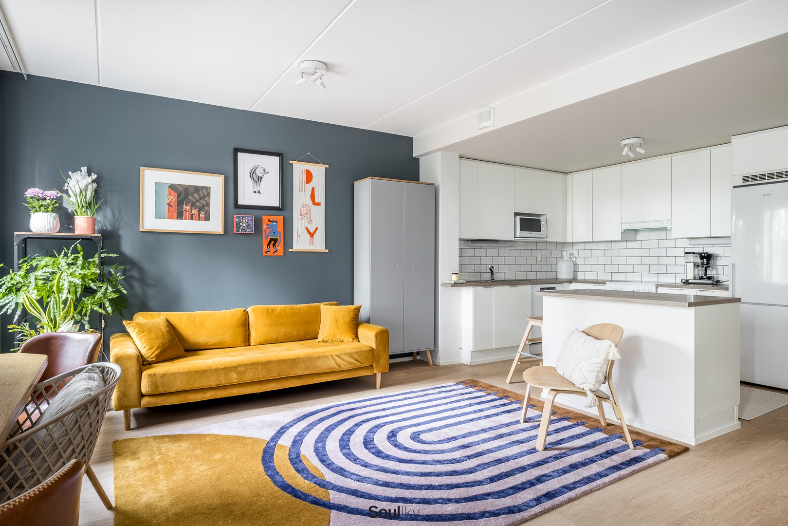 Tämä tilava ja hyvin suunniteltu huoneisto tarjoaa rauhallista asumista modernissa taloyhtiössä. Asunnon toimiva pohjaratkaisu, oma sisäänkäynti sekä lounaaseen avautuva lasitettu parveke tekevät siitä erinomaisen vaihtoehdon. Yläpuolella ei ole naapureita, mikä lisää asumisrauhaa entisestään.