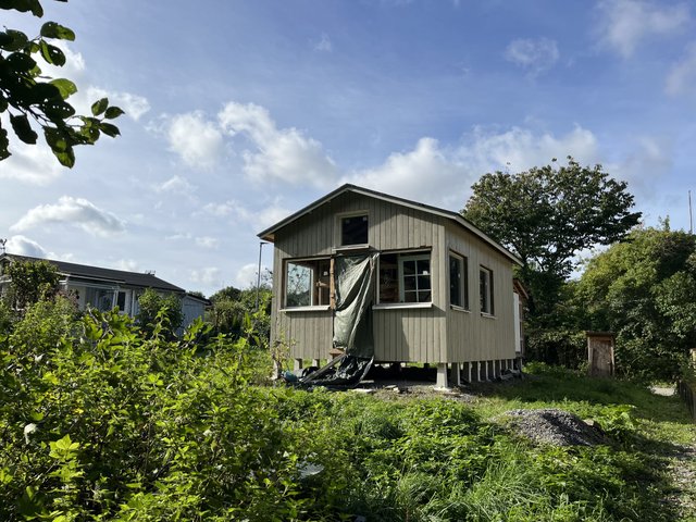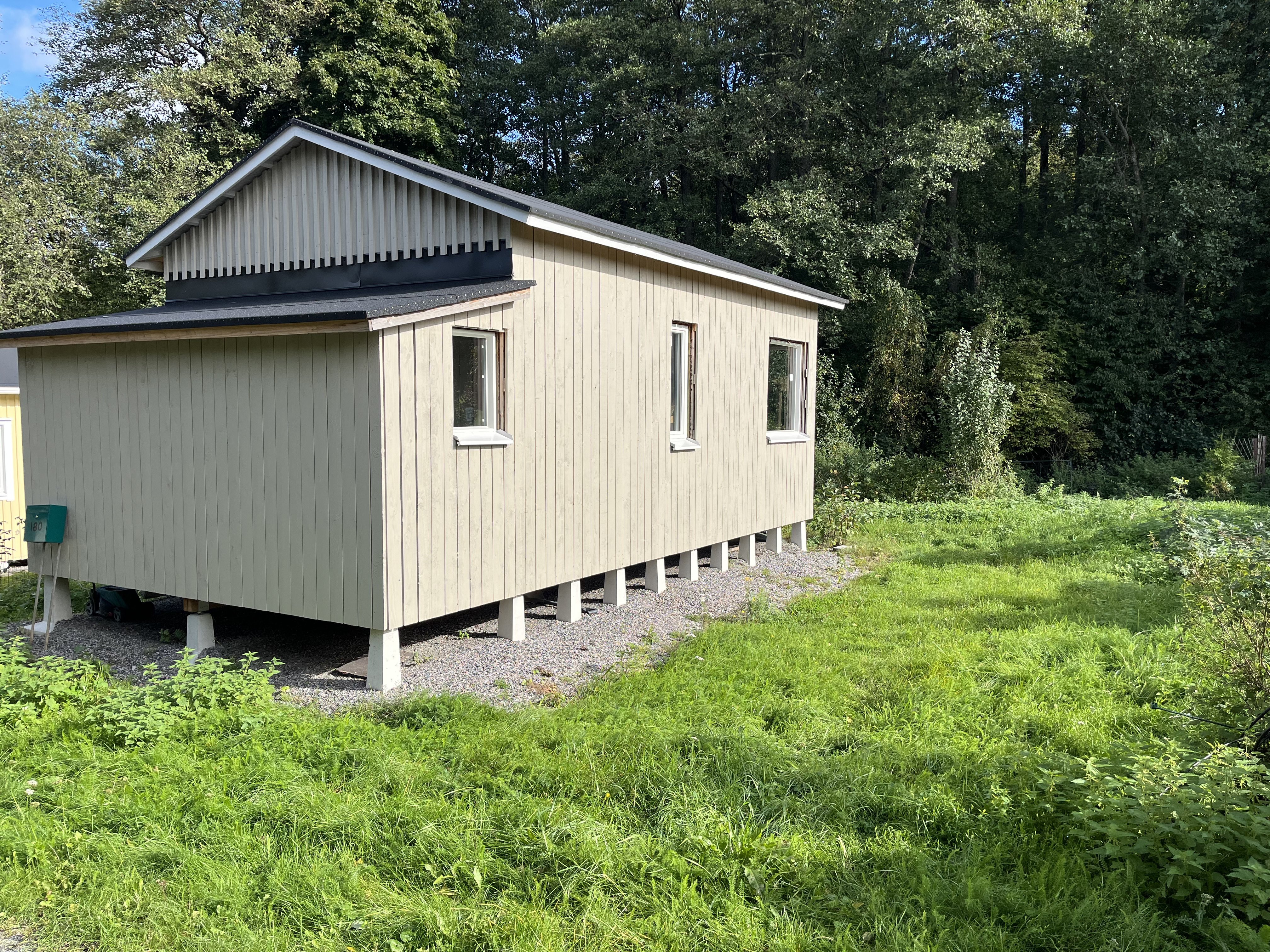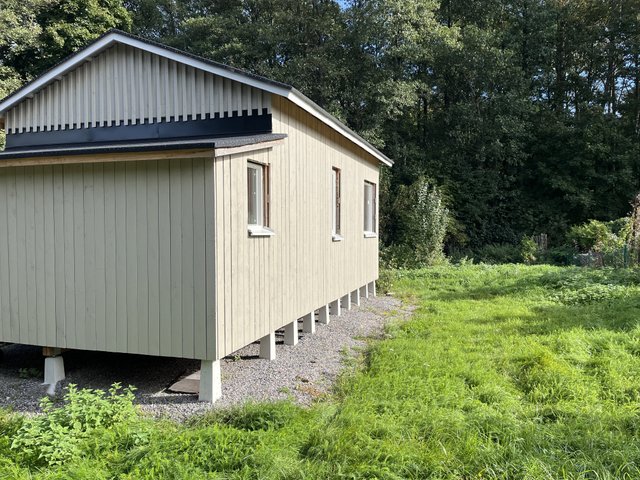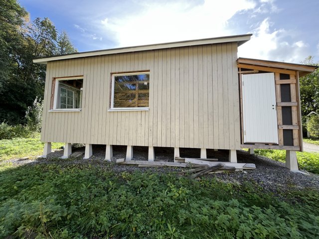 Palstalle on nyt rakennettu mökki, joka pitäisi rakennuttaa loppuun. Runko on hyvä ja valmis, mutta sisältä vaatii laittoa. Sisätiloja ei ole toteutettu ja kattovillat pitäisi asennuttaa loppuun.