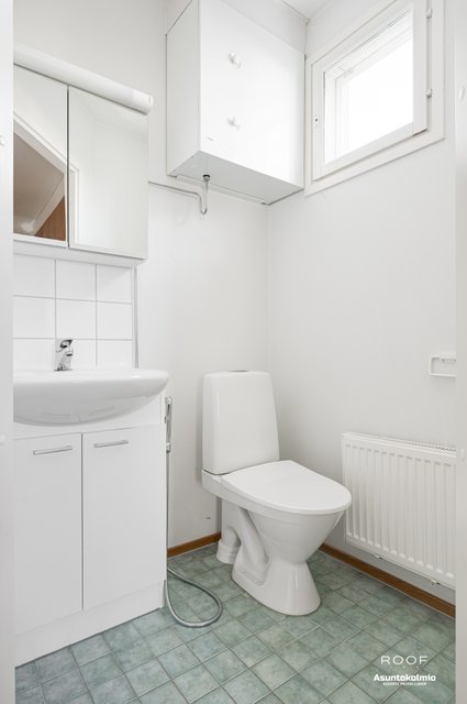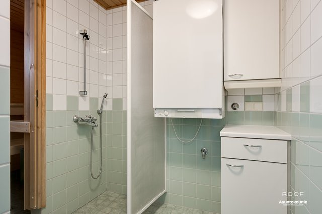 - Suihku, pesukoneliitäntä, lattialämmitys, ja kaapistot