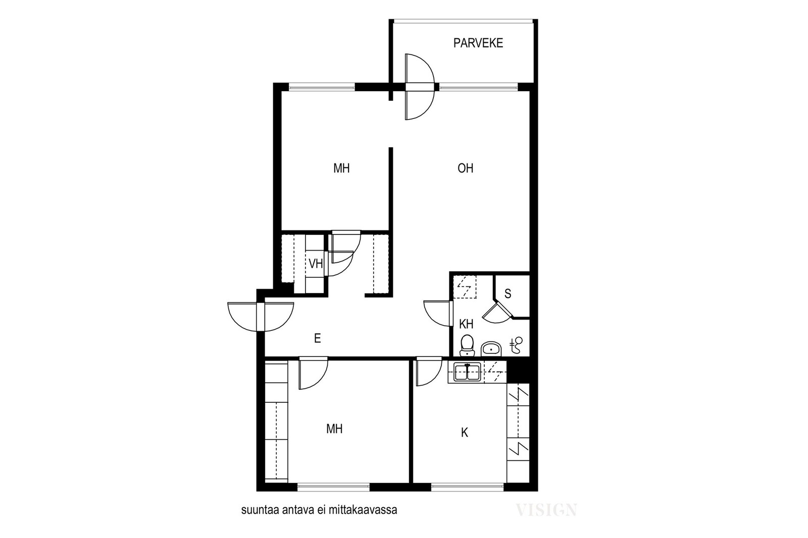 Erinomainen pohjaratkaisu, lasitettu parveke.