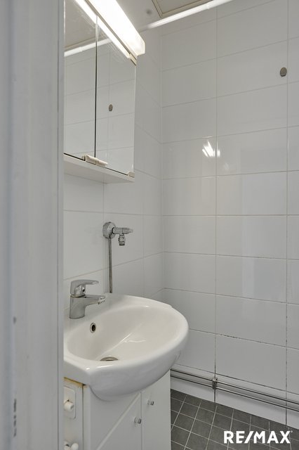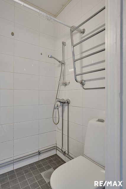 - Saneerattu 2018. Suihku, suihkutanko, peilikaappi, pesuallas, allaskaappi, pesukoneliitäntä, pideesuihku, wc-istuin, kuivauspatteri. Seinät kaakeli. Laattalattia.
