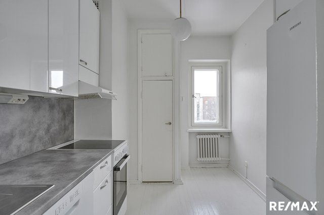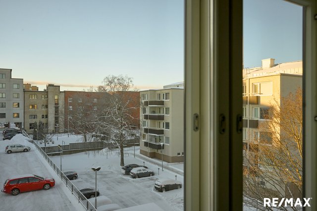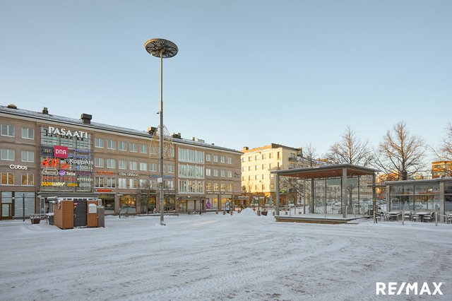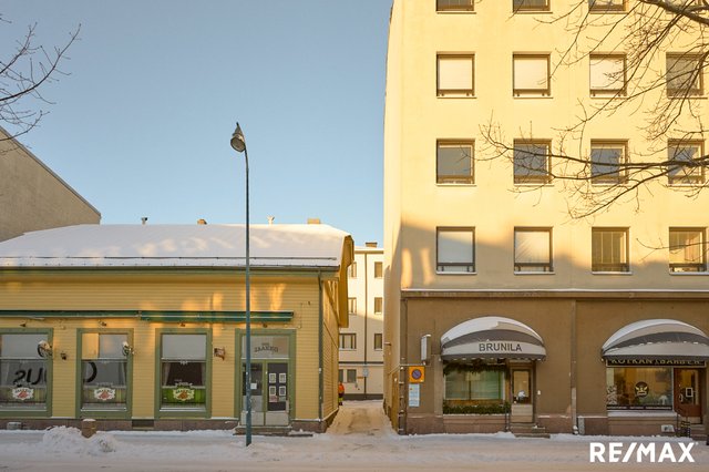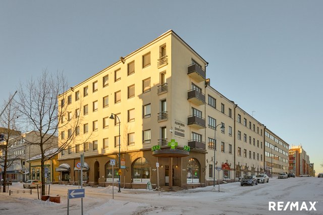 Ydinkeskustan, hyväkuntoinen kaksio. Lautalattiat ja leveät ikkunalaudat. Vuonna 2018 saneerattu pesuhuone ja laattapinnoilla. Keittokomerossa ikkuna ja tilaan mahtuu hyvin pieni ruokailupöytä. Huoneisto on kauttaaltaan saneerattu 2018. Ulko-ovet suljetut ja kameravalvonta. Ylin ja 4-asuinkerros. Hoitovastike 198 €/kk ja vesimaksu 22 €/hlö/kk. Taloyhtiö omalla tontilla, kaukolämmössä. Kaapeli-tv, joka sisältää asukkaille maksuttoman nettiyhteyden (10 M).