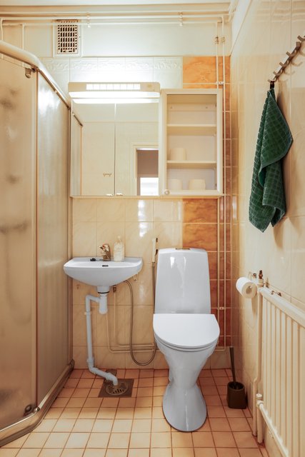 - Suihku, wc-istuin, peili, pesuallas, ja pesukoneliitäntä