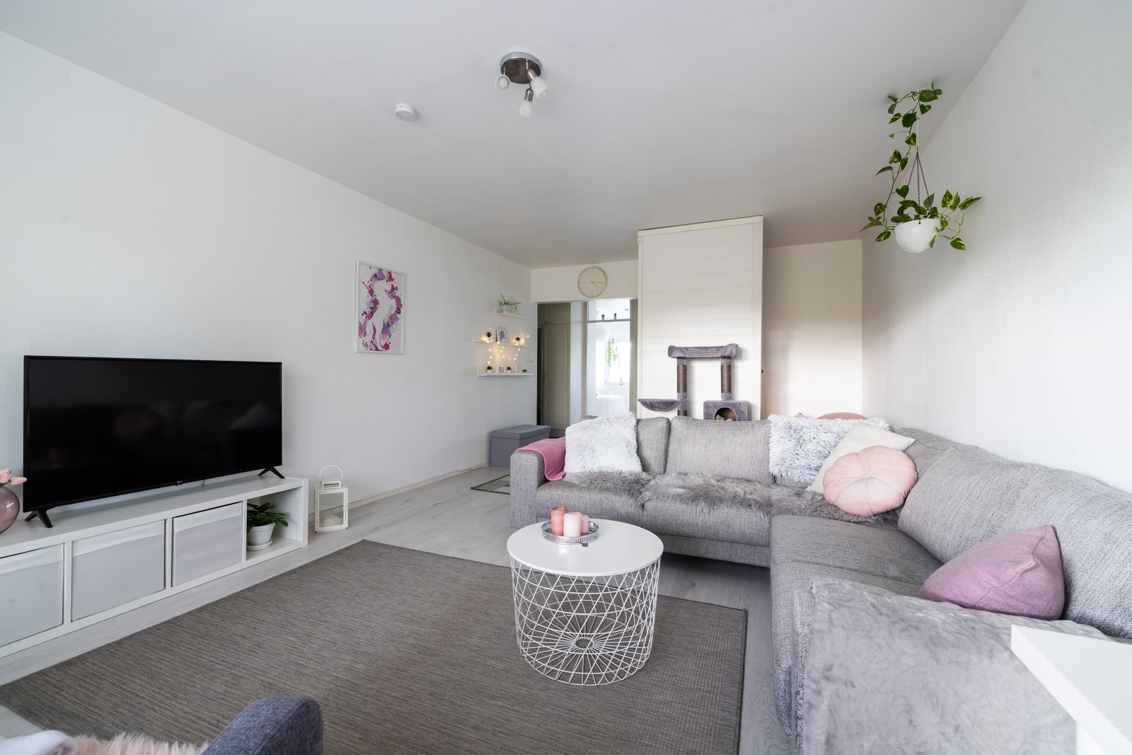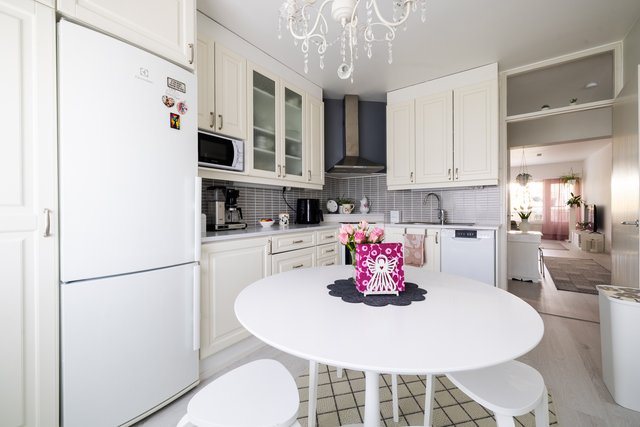 Asunnossa harmoniset vaaleat sävyt.