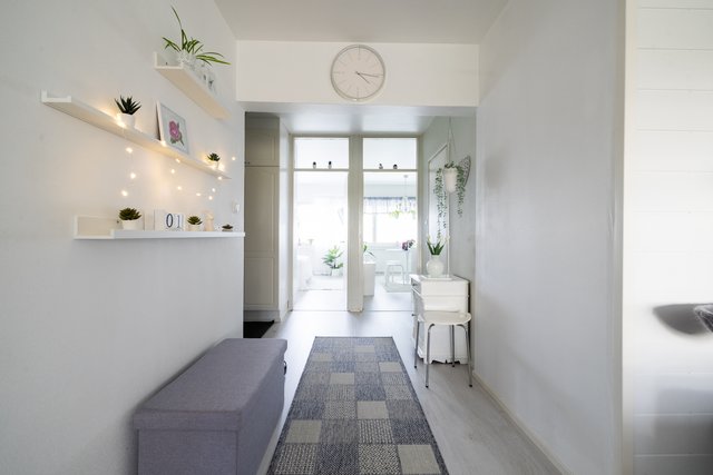- Eteisessä laminaatti ja seinillä lasikuitutapetti. Eteisessä kiinteä kaapisto.