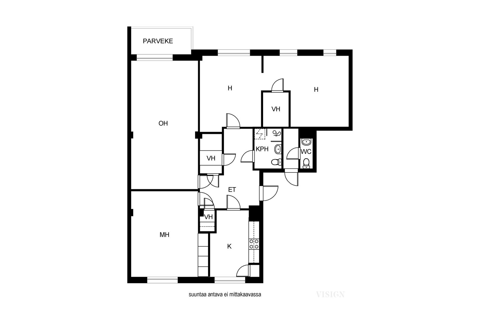 - Pihalle pohjoiseen/itään ja kadulle etelään.