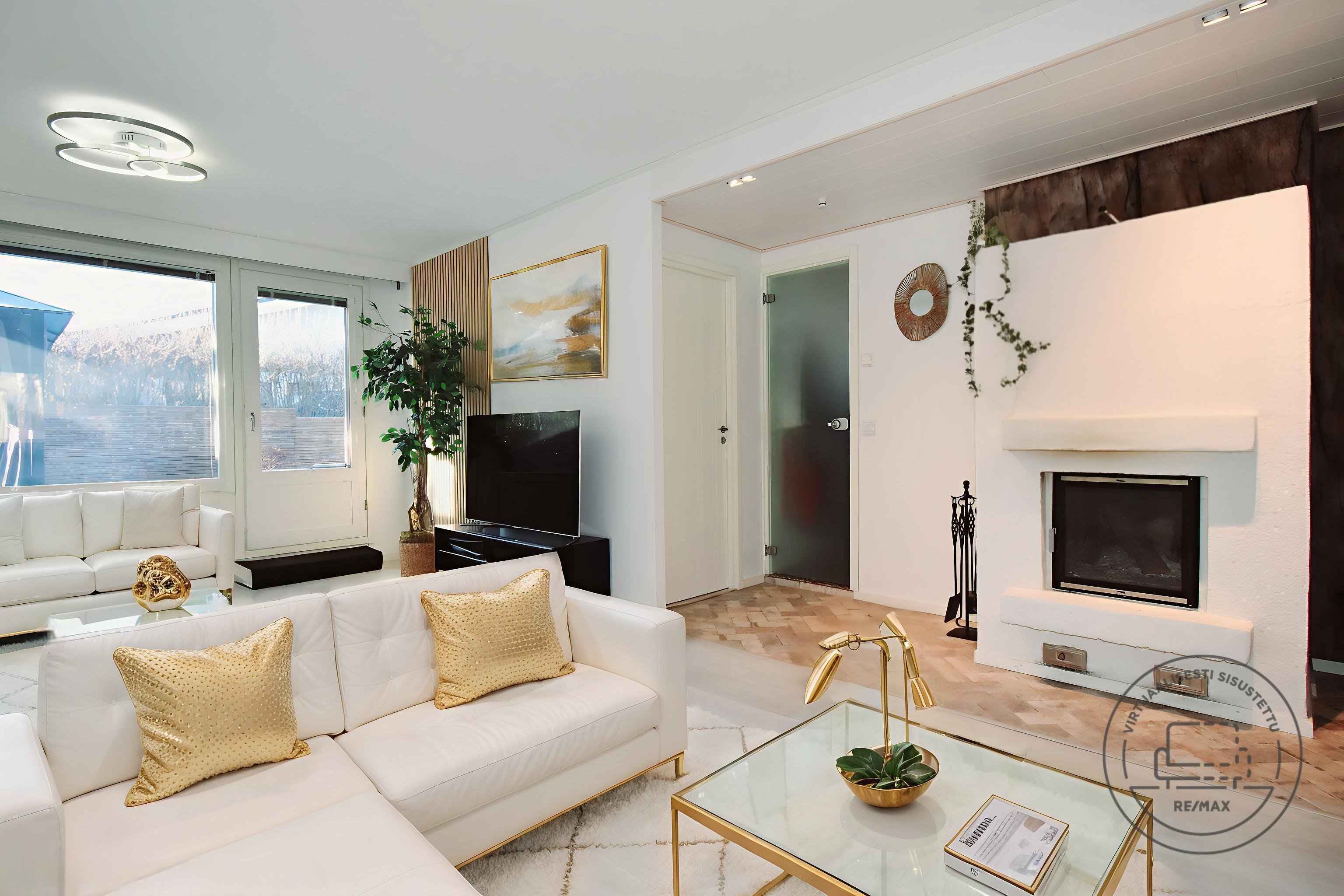 Kodin sydän on viihtyisä takkatila, joka luo lämpöä ja tunnelmaa. Tyylikkäästi ja laadukkaasti uudistettu keittiö on varustettu modernilla induktioliedellä, erillisuunilla, jossa upeat ohjaustoiminnot, täysikokoisella jääkaapilla ja pakastinkaapilla sekä integroidulla mikroaaltouunilla, joten kaikki keittiötoiminnot sujuu vaivatta. Tyylikkäästi uudistettu kylpyhuone ja sauna tarjoavat rentouttavat hetket arjen keskellä.