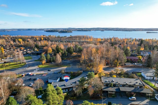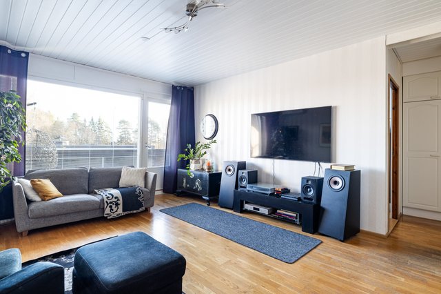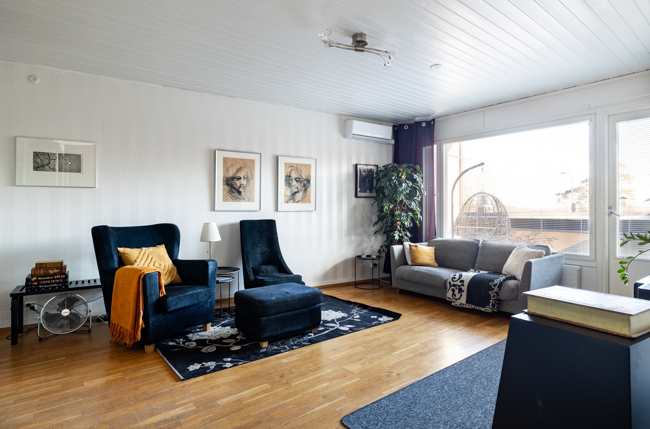 Asunnon sijainti on ihanteellinen: läheltä löytyvät koulut, kaupat ja hyvät liikenneyhteydet.