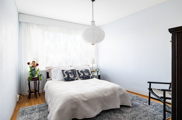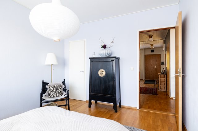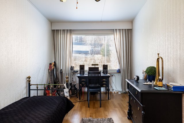 - Makuuhuone1: Lattia laminaattia, seinät maalattu, säilytystilana vaatehuone. Makuuhuone 2: Lattia laminaattia, seinät tapetoitu, säilytystilana peilikaapisto.