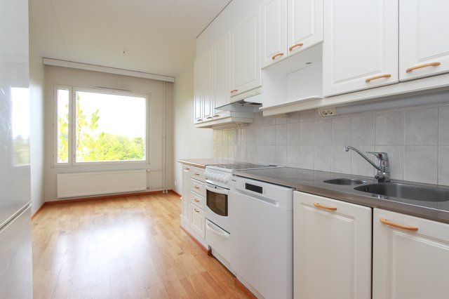 Lattiat ovat parkettia ja seinät maalattu. Pesuhuoneessa kaakelointi ja lattialämmitys. Asunnon hintaan kuuluu oma autokatospaikka, mikä lisää asumismukavuutta.